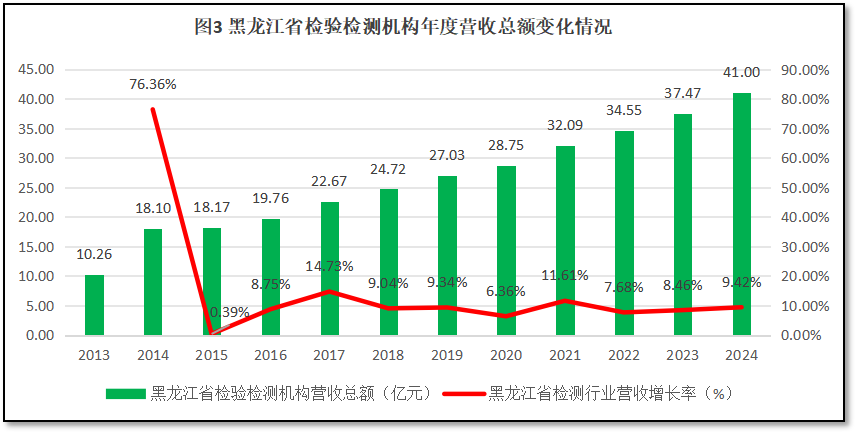 过去12年黑龙江省检验检测机构年度营收总额的变化如图3所示。