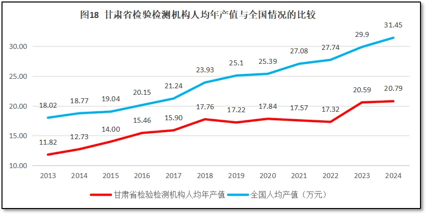 甘肃省检验检测机构人均年产值与全国的情况比较如图18所示。