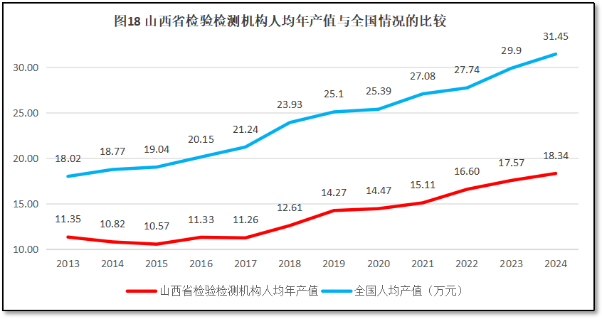 山西省检验检测机构人均年产值与全国的情况比较如图18所示。