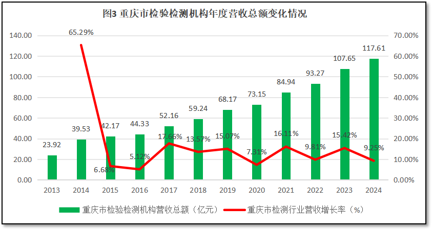 过去12年重庆市检验检测机构年度营收总额的变化如图3所示。